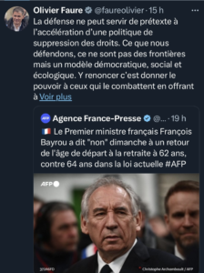 Chez les socialistes, le chef du parti Olivier Faure a souligné que « la défense ne peut servir de prétexte à l’accélération d’une politique de suppression des droits. » Boris Vallaud, président des députés PS, a renchéri en pointant une « brutalité de la trahison de la parole donnéeet écrite » de la part du Premier ministre.
