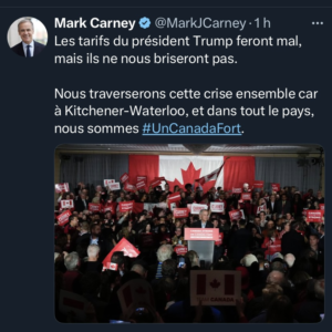 Le Premier ministre canadien, Mark Carney, a vivement réagi à l’annonce de ces tarifs douaniers, qu’il qualifie d' »attaque directe » contre l’industrie automobile de son pays.