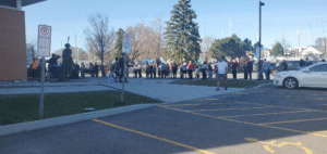 Des citoyens canadiens devant un bureau de vote de la circonscription Hull-Aylmer à Gatineau, au Québec ( CD Echosplus)